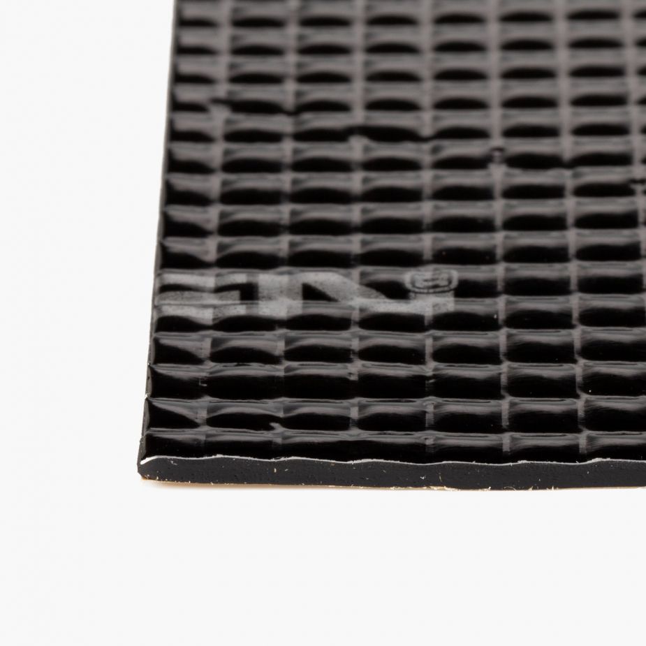 Die Kombination aus 2,0 mm Butyl und 0,1 mm Aluminiumfolie reduziert Blechvibrationen und Resonanzen effektiv – auch auf stark geformten Karosserieflächen.