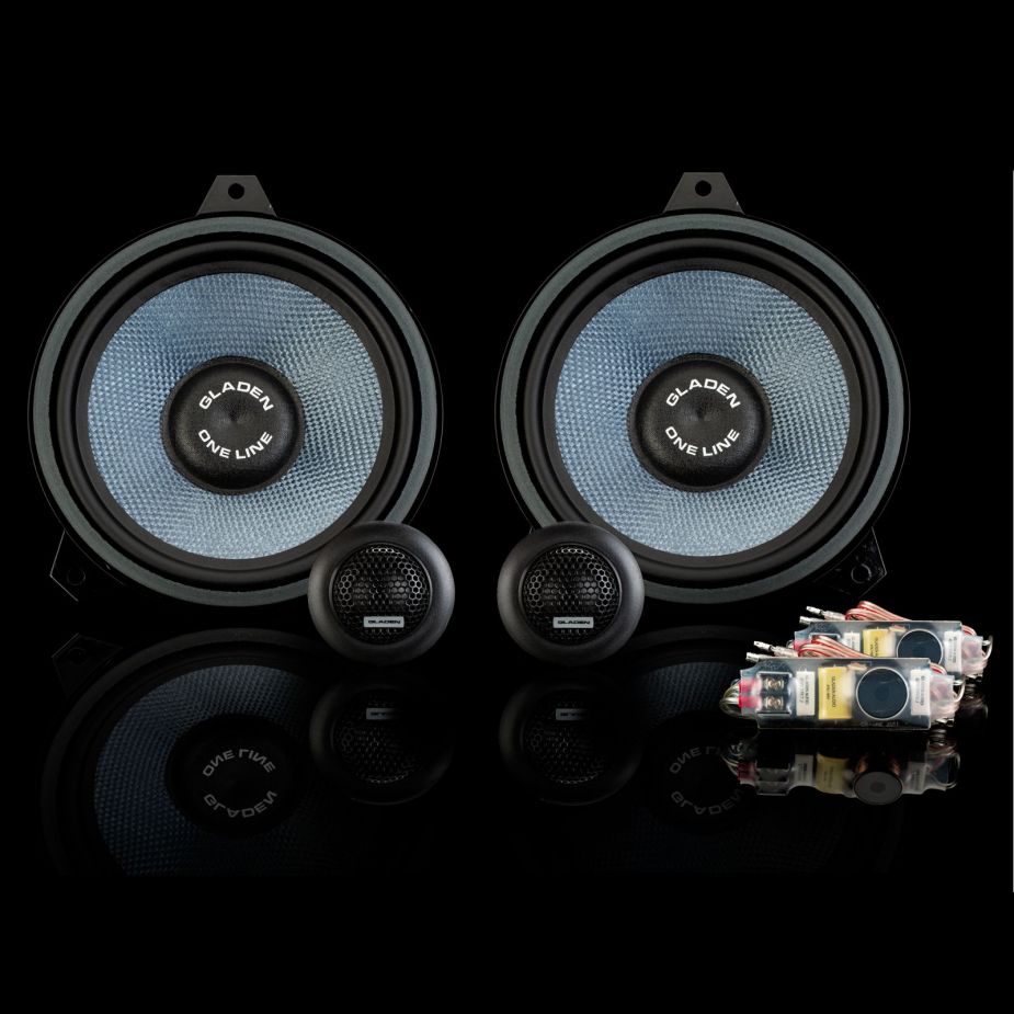 Das GLADEN ONE 165 BMW E46 ist speziell für den BMW der Baureihe E46 einwickelt worden. Besondere Eigenschaften sind hier die spezielle Lautsprecheraufnahme des Tieftöners. Eine fahrzeugoptimierte Weiche und eine 25 mm Seidenkalotte runden das Bild dieses GLADEN Systems ab.