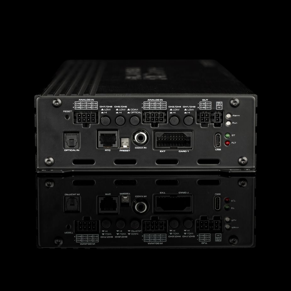 Der RCore 6|8 DSP bildet die zentrale Schaltstelle für moderne Soundsysteme. Sechs integrierte Endstufen treffen auf eine leistungsfähige 8-Kanal-DSP-Plattform. Dadurch ist der Aufbau komplexer Aktiv- oder Hybrid-Systeme möglich – von OEM-Upgrades bis hin zu vollaktiven High-End-Installationen.