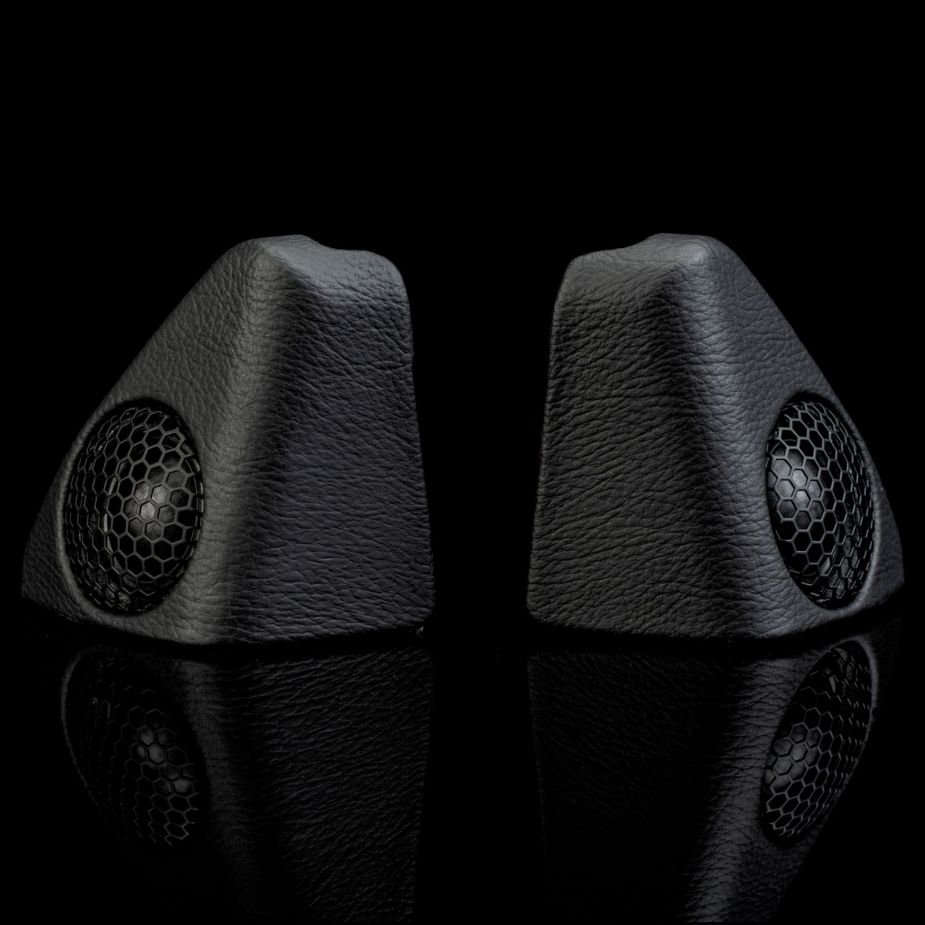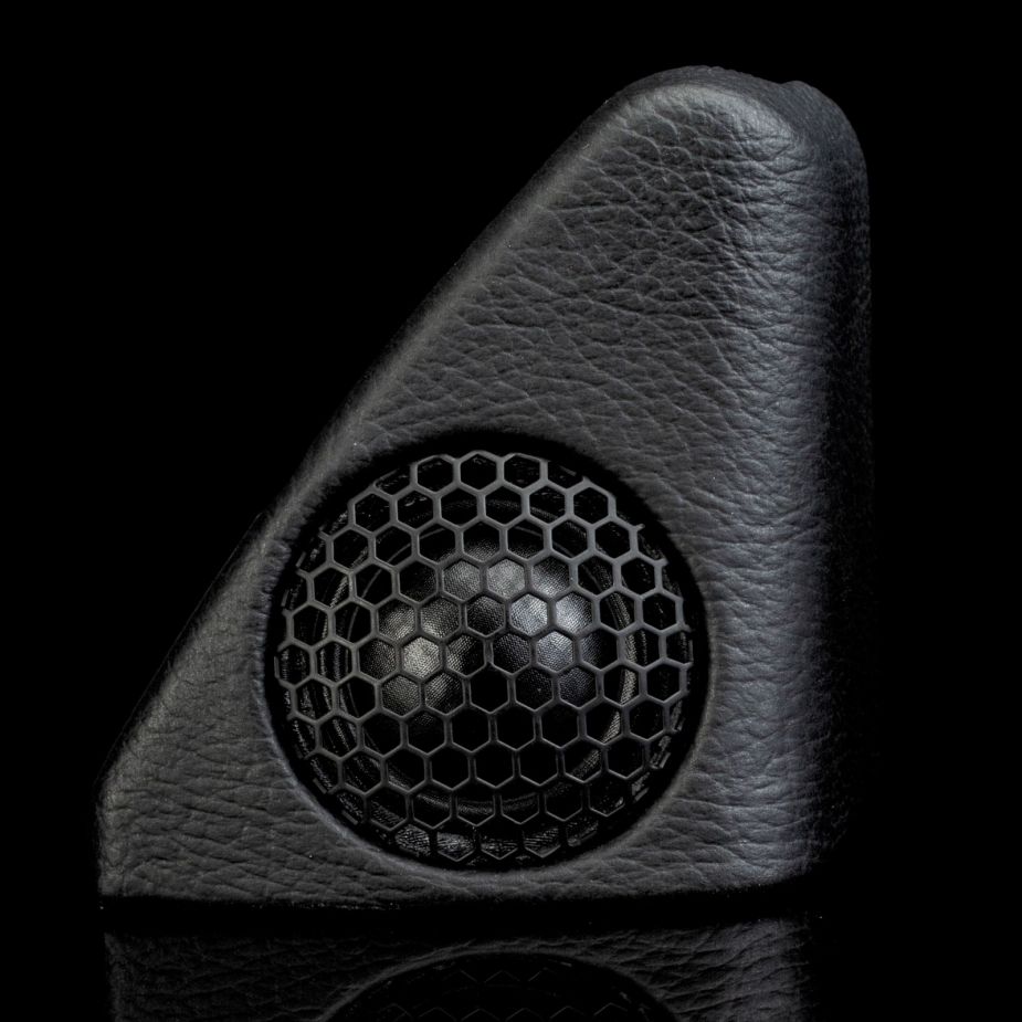 Das mit hochwertigem Kunstleder bezogene Panel fügt sich unauffällig in das Fahrzeuginterieur ein. Ein integriertes Schutzgitter schützt den Hochtöner zuverlässig, ohne den Frequenzgang negativ zu beeinflussen.
