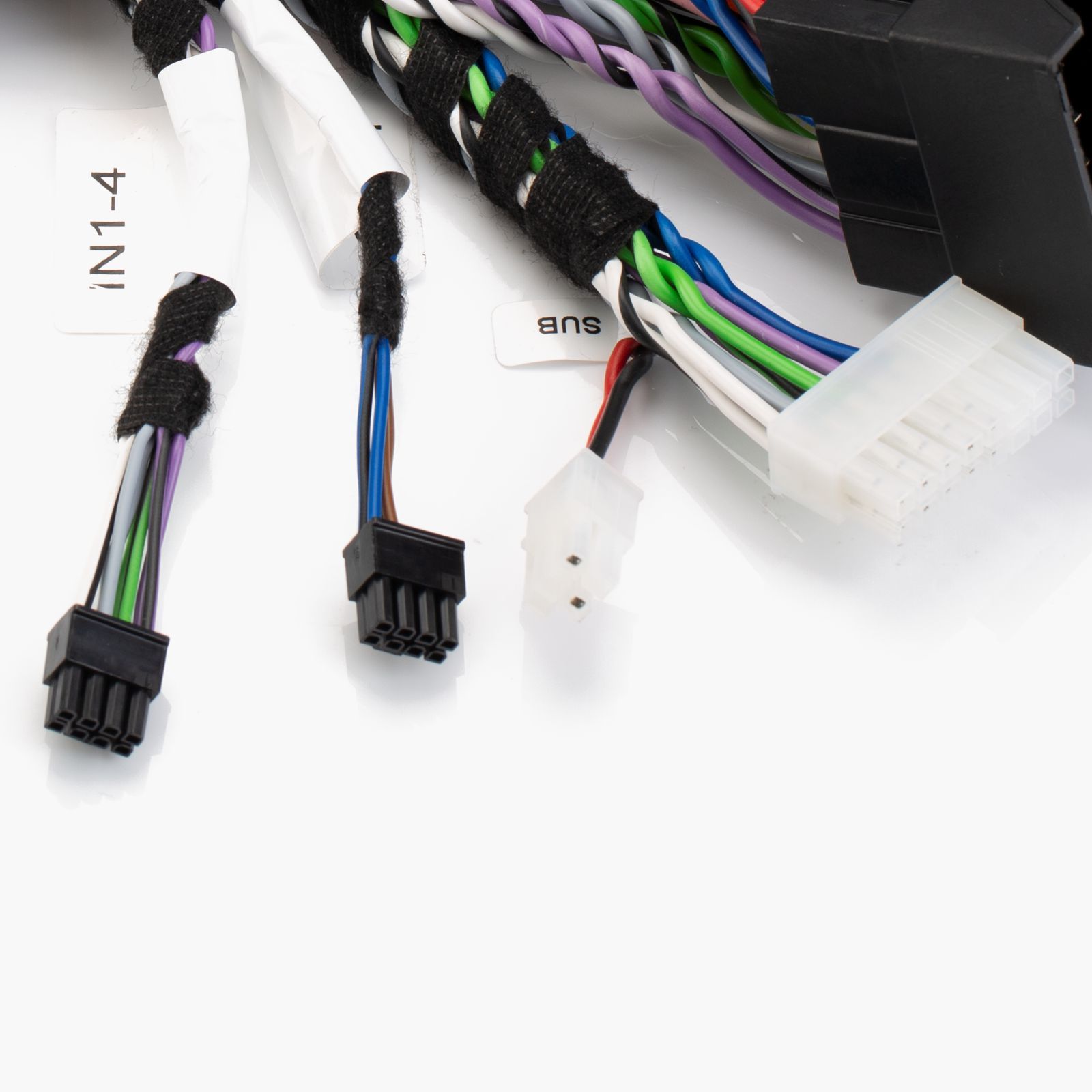 Kabelsatz für die Installation einer MOSCONI ONE Molex Endstufe in ein Fahrzeug mit originalem Power-Quadlockanschluss.