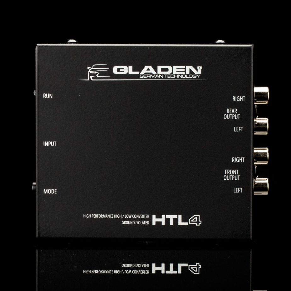 The GLADEN HTL4 is a high-quality, four-channel, high-low adapter designed for the clean integration of retrofit amplifiers into modern vehicle audio systems. Designed for connection to OEM radios and factory amplifiers, it enables low-loss conversion of speaker signals to RCA signals.