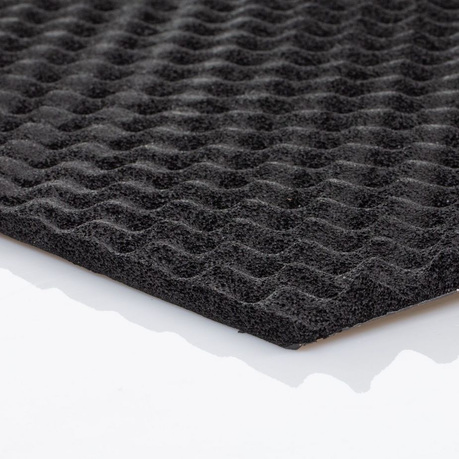 Its wave structure ensures sound reflections are broken and airborne sound is absorbed while effectively decoupling components.