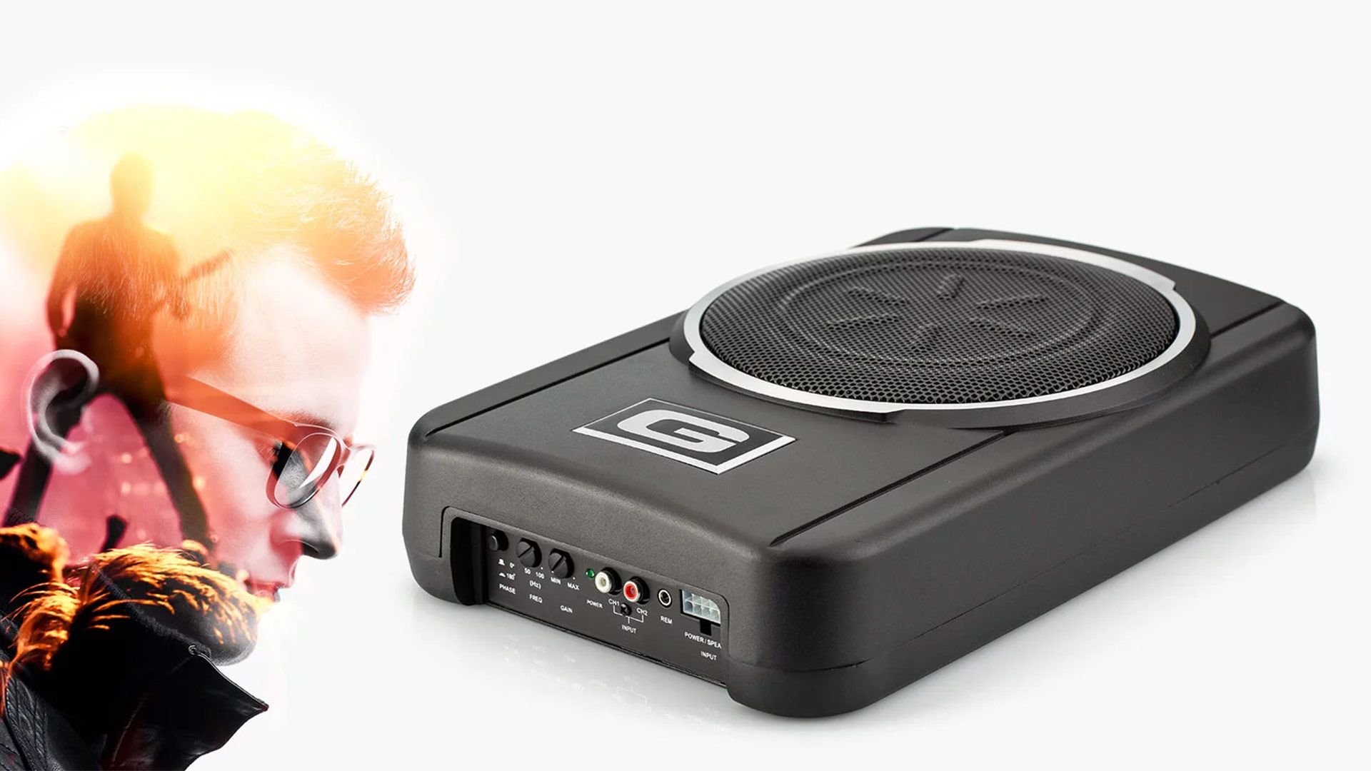 Unser ultraflacher Subwoofer gladen US 8 mit Aluminium-Gehäuse passt unter jeden Sitz, wenn der Kofferraum keine Option ist. Hierbei handelt es sich um ein aktives System mit implementierten Verstärker.