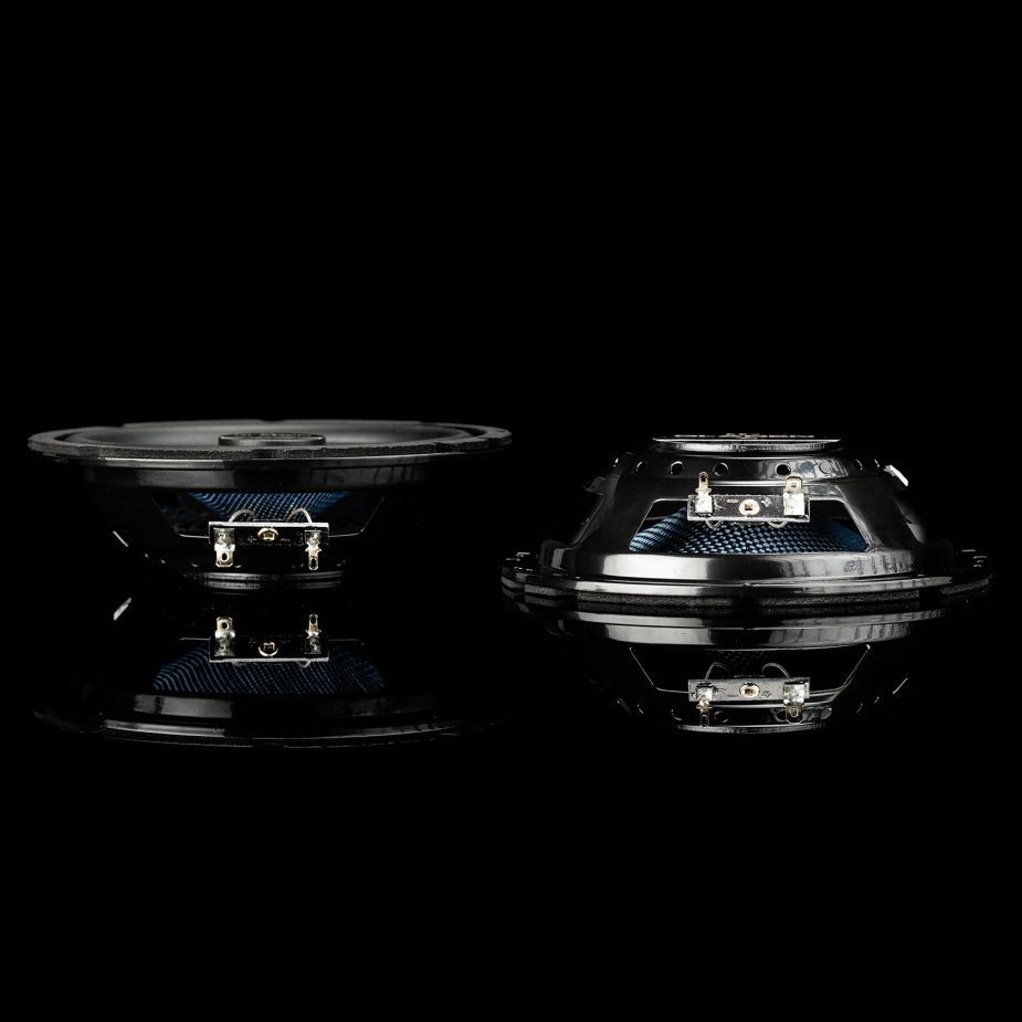 165 mm sound quality system with low installation depth. Therefore, optimally suited for special solutions or vehicles with small space requirements behind the woofer.
