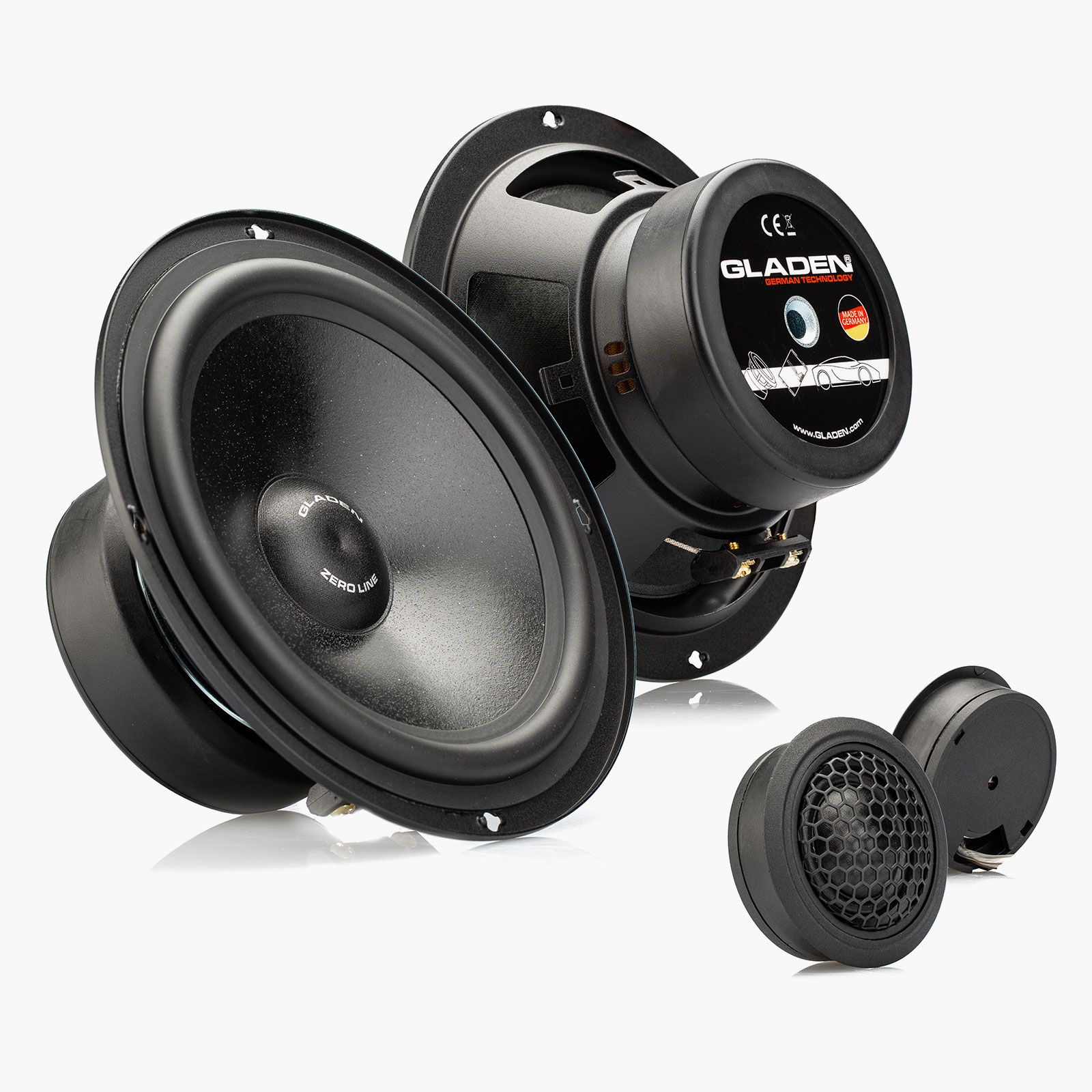 Gladen Zero loudspeakers are the smallest member of our "Made in Germany" speaker systems. Nevertheless, these speakers effortlessly manage to build up great dynamics. Due to the optimised efficiency, this series allows operation with small amplifiers or even the car receiver.