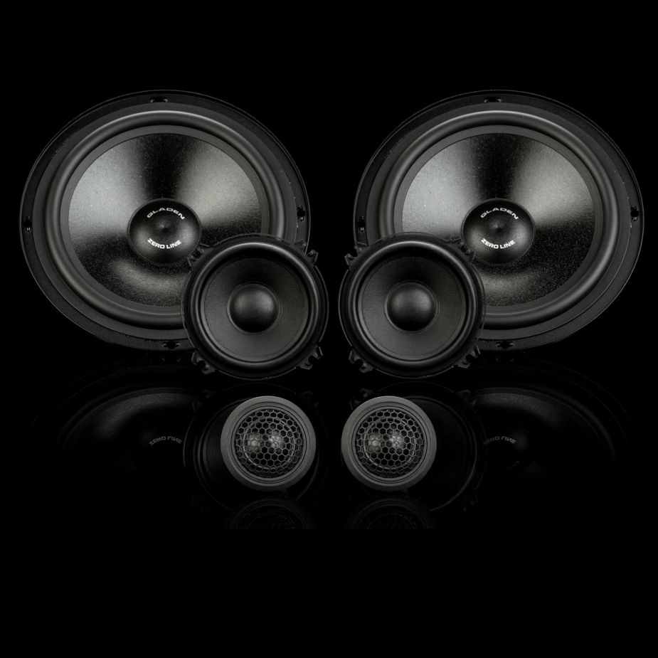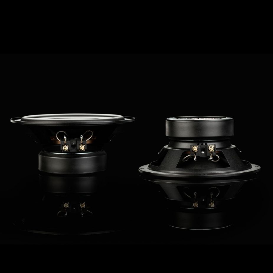 High-end system consisting of a 165 mm woofer, a 80 mm midrange driver and a 25 mm tweeter dome (always in pairs).