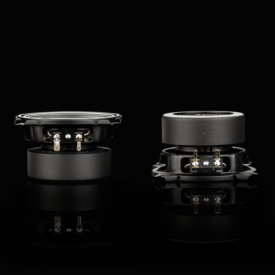 High-end system consisting of a 100 mm woofer and a 25 mm dome tweeter (always in pairs). A passive crossover is included for the speaker system. The complete Zero speaker system is designed and built in Germany.
