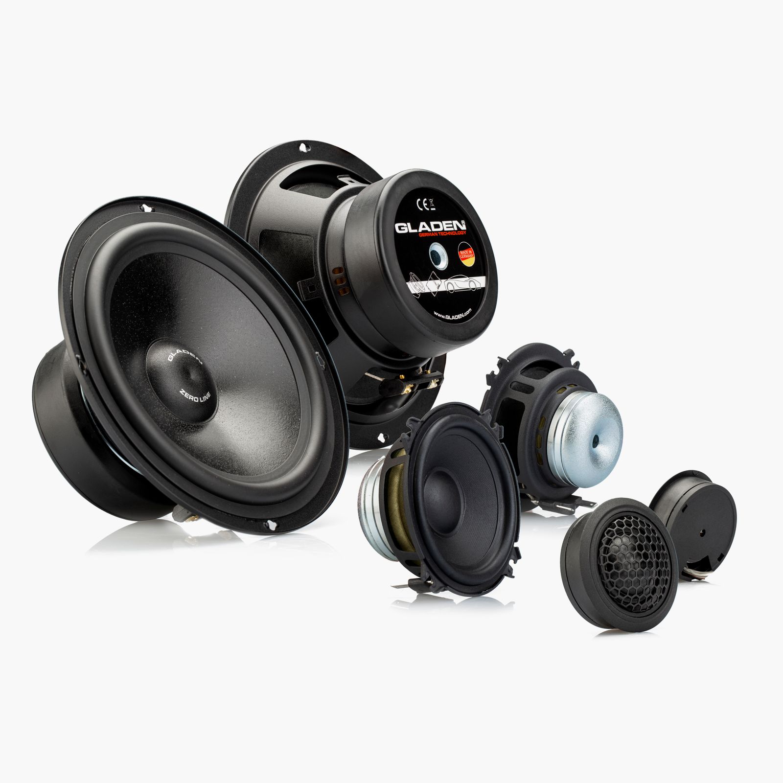 Gladen Zero loudspeakers are the smallest member of our "Made in Germany" speaker systems. Nevertheless, these speakers effortlessly manage to build up great dynamics. Due to the optimised efficiency, this series allows operation with small amplifiers or even the car receiver.
