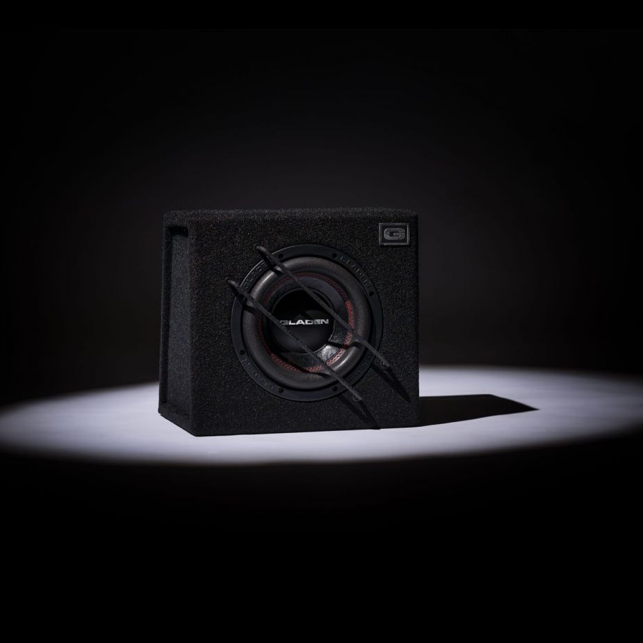 Compact Gladen RSX subwoofer in a classic cabinet.
