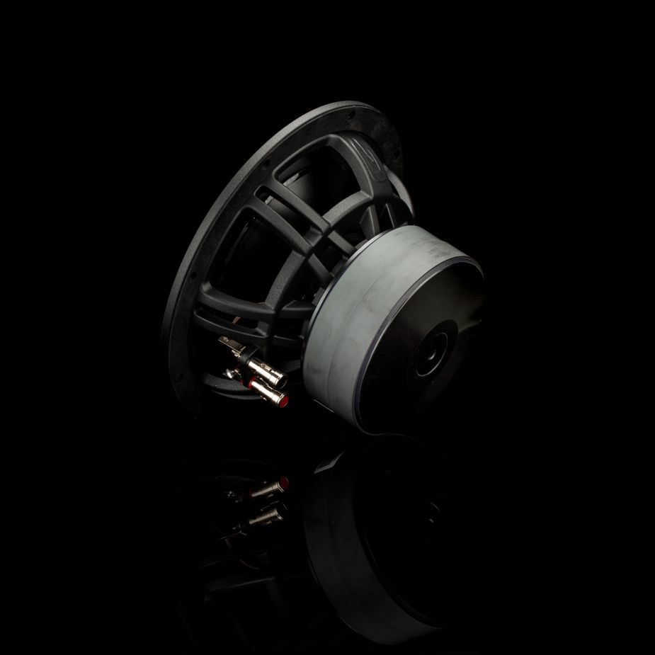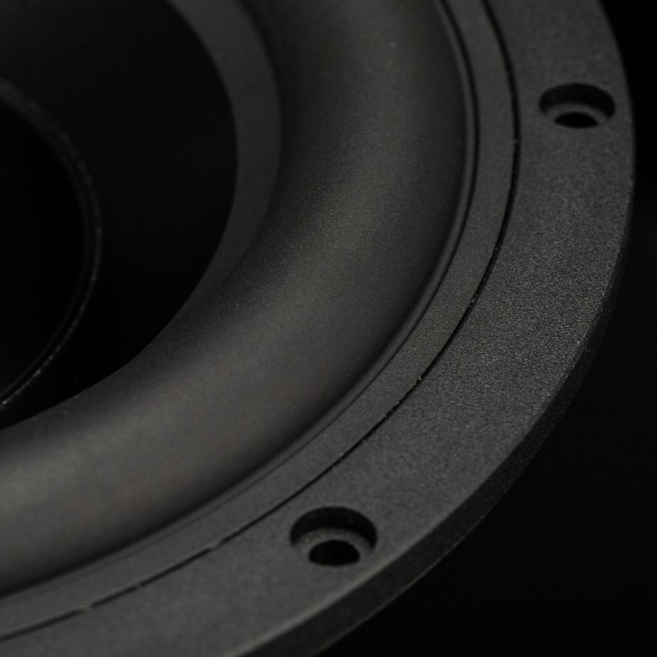 The rigid aluminum cone ensures clean, piston-like movement across the operating range, supporting accurate bass reproduction, even at higher output levels. Its robust, die-cast aluminum chassis provides high mechanical stability and features extensive ventilation to reduce air compression during operation.