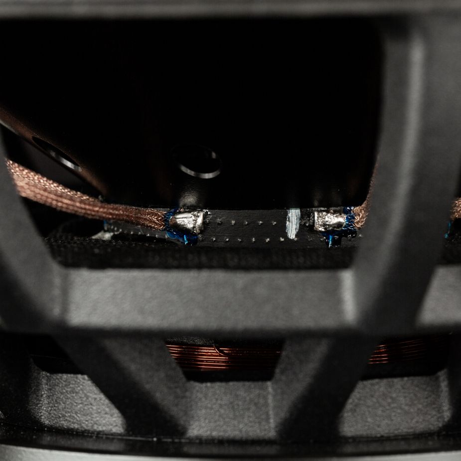 A powerful motor with a 2-inch voice coil ensures controlled force transfer in the low-frequency range. The voice coil is wound on a heavy-duty fiberglass former to reduce mechanical losses and support precise cone control.