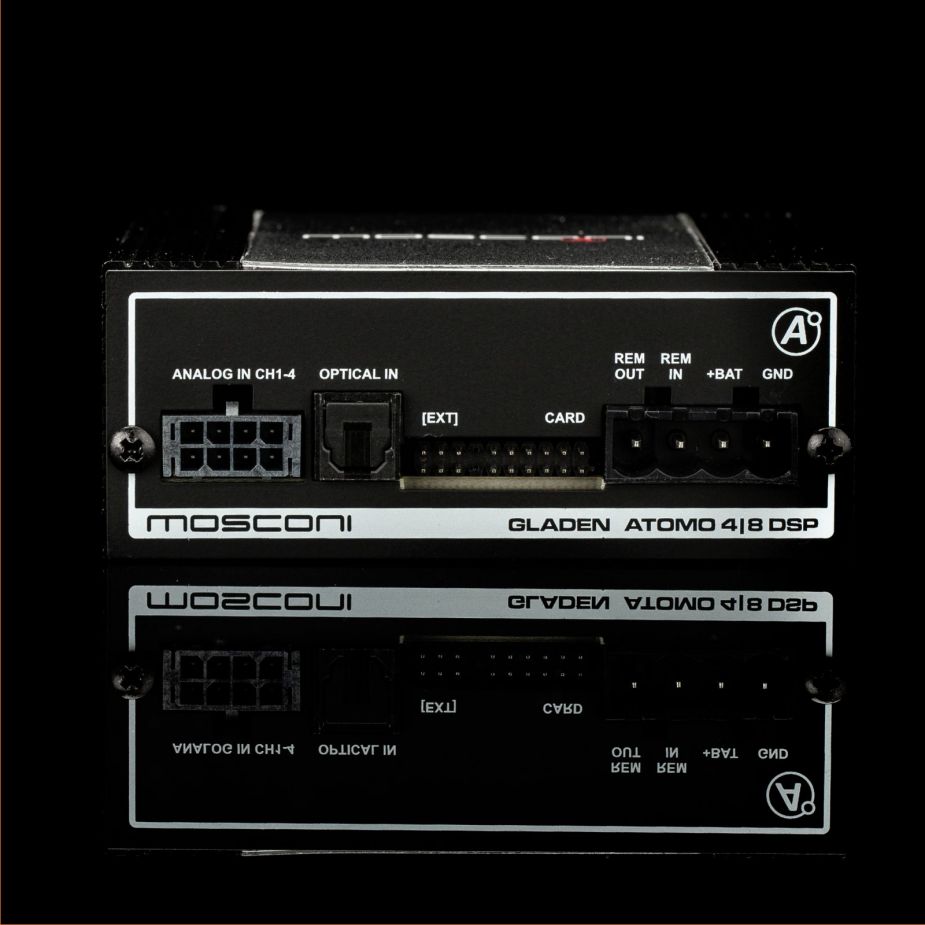 Extremely powerful DSP in a compact design. Four analog (high/low level) and three digital inputs (SP-Dif, Bluetooth streaming with MOS-BTS, BT+ with direct DSP access). Expandable to 8 analog inputs with MOS EXT4HLin. Compatible with 12 V and 24 V on-board power supply. Six analog outputs. 64 bit platform with dISC functions (dynamic equalizer and phase control). All connectors Molex industry standard. Direct RTC connection for volume, sublevel or input volume.