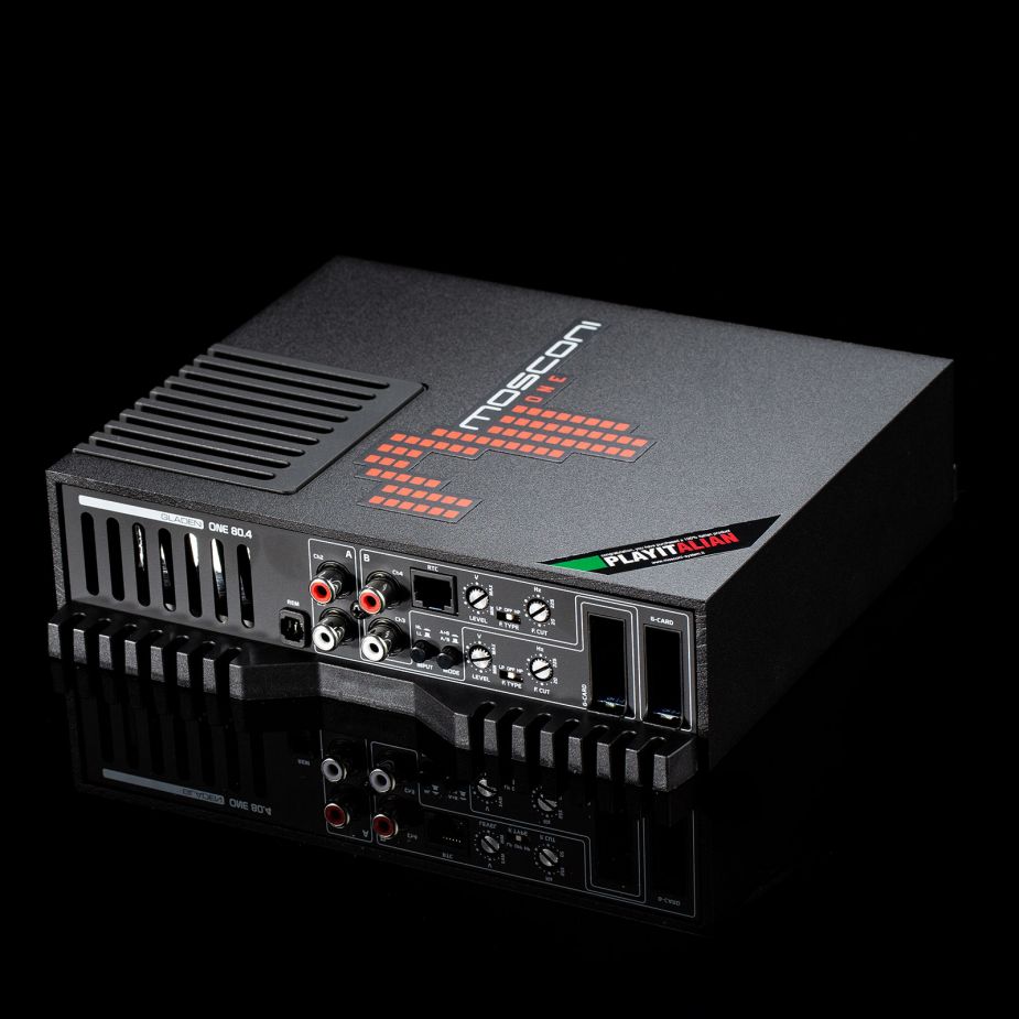 The MOSCONI ONE 80.4 is a universal 4 channel high quality amplifier in Class AB technology. It is the ideal amplifier for loudspeaker systems and/ or efficient subwoofers. The ONE 80.4 is designed as a double-stereo power amplifier, but can also be operated in three-/ or two-channel mode. This amplifier is powerful and thanks to the analog Full Mosfet-technology has outstanding sound characteristics.