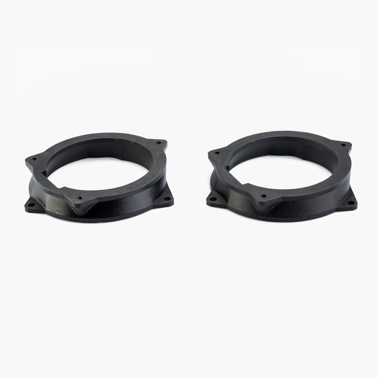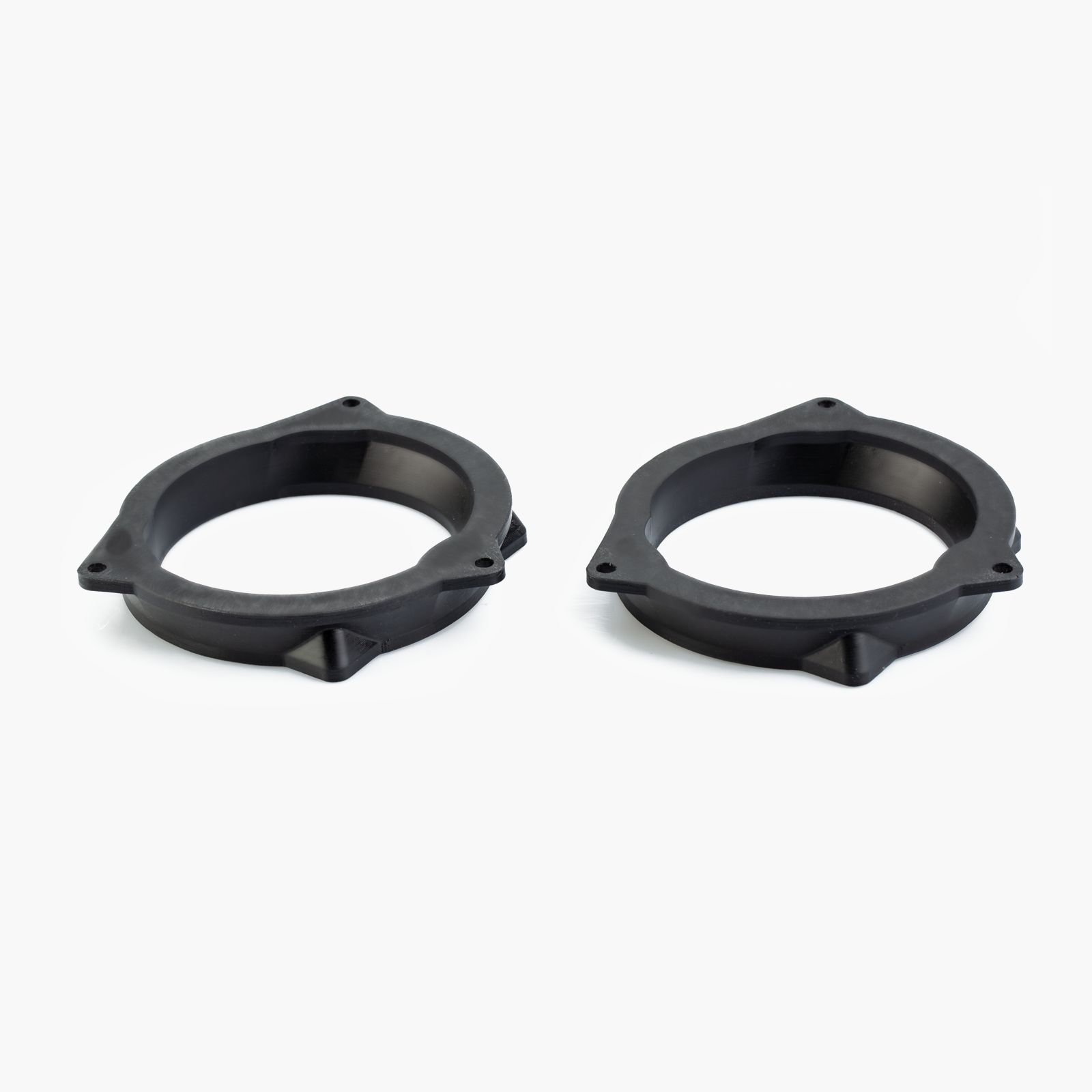 Speaker adapter for connecting speakers with classic speaker terminals to a SoundUp harness set with vehicle-specific plugs.